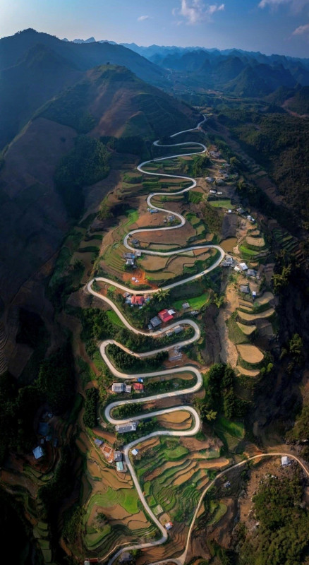 Located on National Highway 4A, Khau Coc Cha Pass connects Tuyen Quang and Cao Bang provinces. This steep pass features 14 challenging hairpin turns, forming 15 sheer tiers that make the road look like a dramatic living monument—a staircase leading up to the sky.